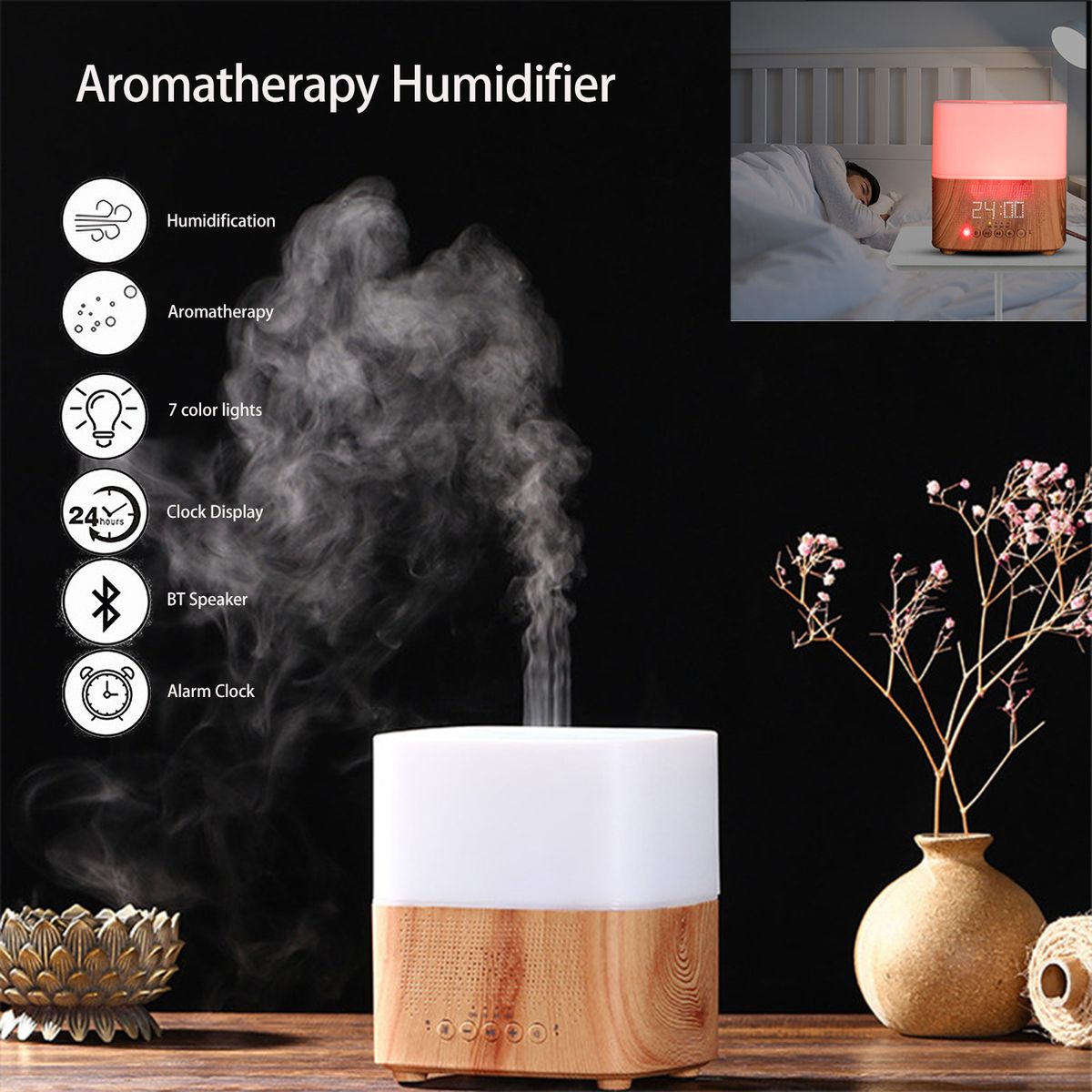 Feature: Aromatherapy Humidifier with Time Display Alarm Clock Bluetooth Speaker LED Night Light