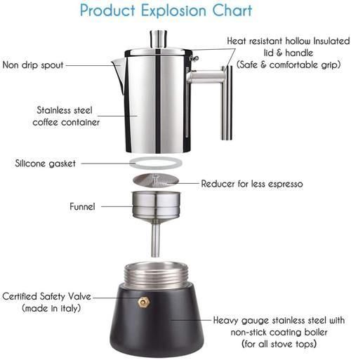 Product: geyser coffee maker induction cooker 200ML 304 Stainless Steel espresso coffee maker Coffee pot Moka Pot italian coffee machine