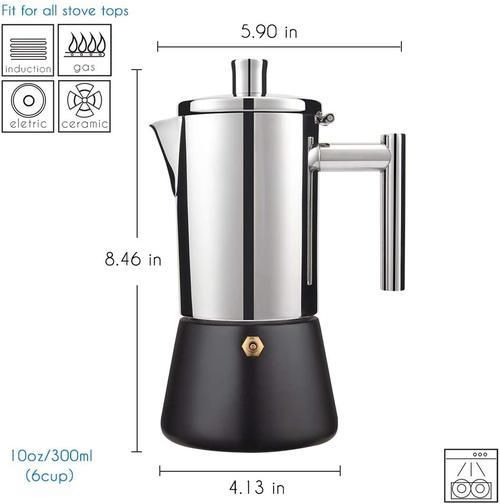 300ML Geyser Coffee Maker Induction Cooker 300ML 304 Stainless Steel Espresso Coffee Maker Coffee Pot Moka Pot Italian Coffee Machine-Coffee Pots