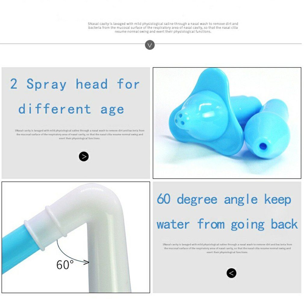 Nasal wash is based on human nasal internal physiological structure characteristic for product design, remove dirt, pollen, postoperative residue, dust, etc.