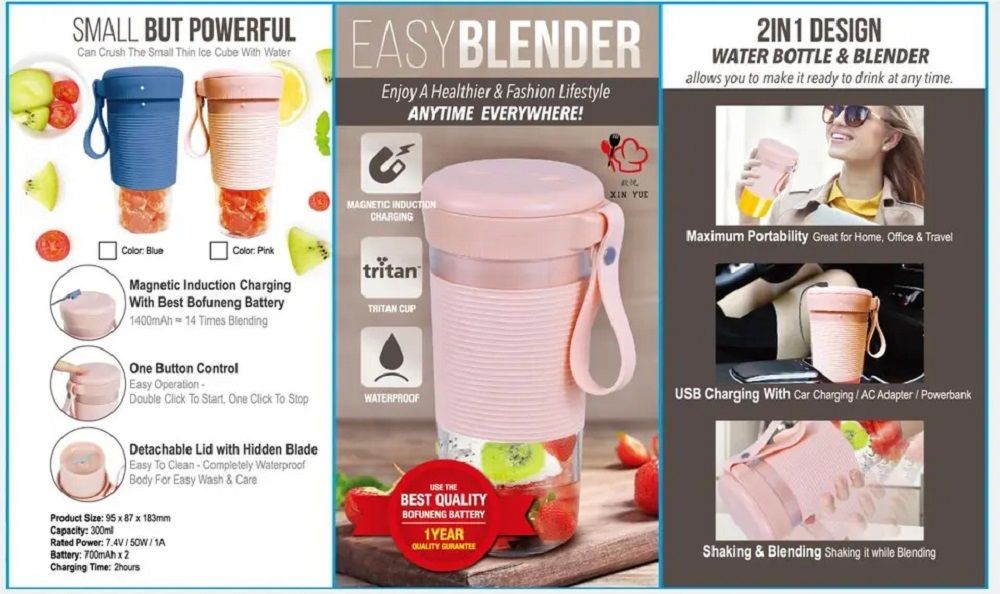 - The Juicer is a powerful, portable and rechargeable fruit juice blender with six blades to blend your fruit juice very smoothly, the battery capacity can blend up to 10-12 times after fully charged.