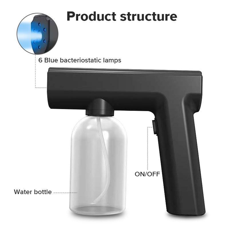 10.6 blue light heads Strengthen sterilization,300ml large capacity water bottle Ultra-fine atomization, continuous spraying for 20 minutes.