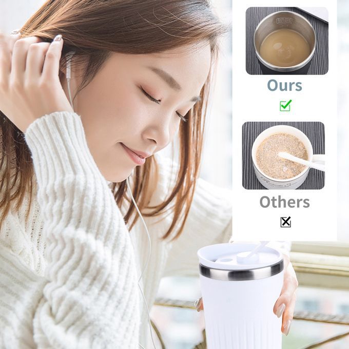 [USB Rechargeable]This self-stirring coffee mug equips with a 400 mAh battery. High capacity batteries charge the electricity once can ensure use a long time.
