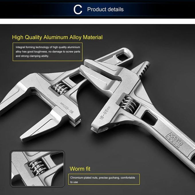 1.Ultra-light aluminum alloy pipe nut short handle large opening adjustable wren h, not to hurt the de orative fittings and nuts.
