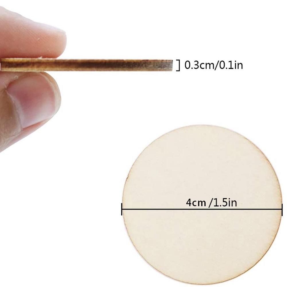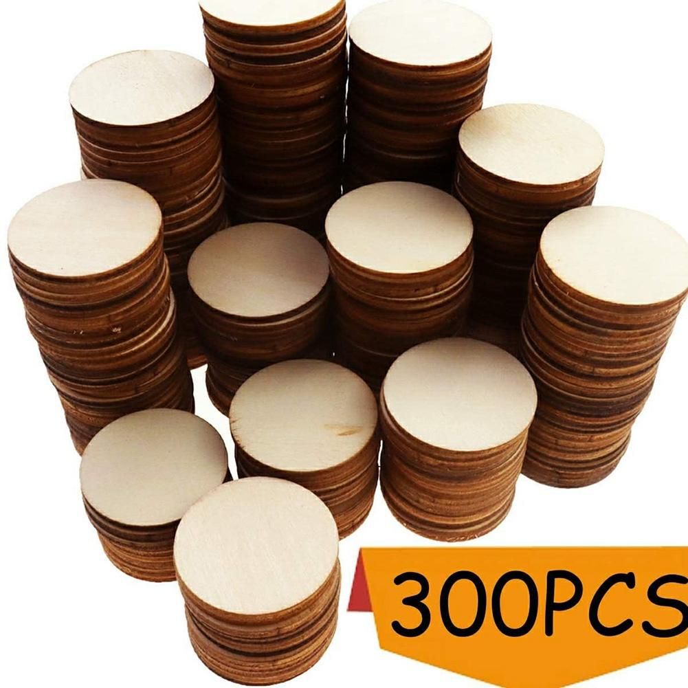 Package includes 300 pcs natural unfinished wood slices, feature dual blank sides for decoration and personalization, each measures 1.5inch in diameter.