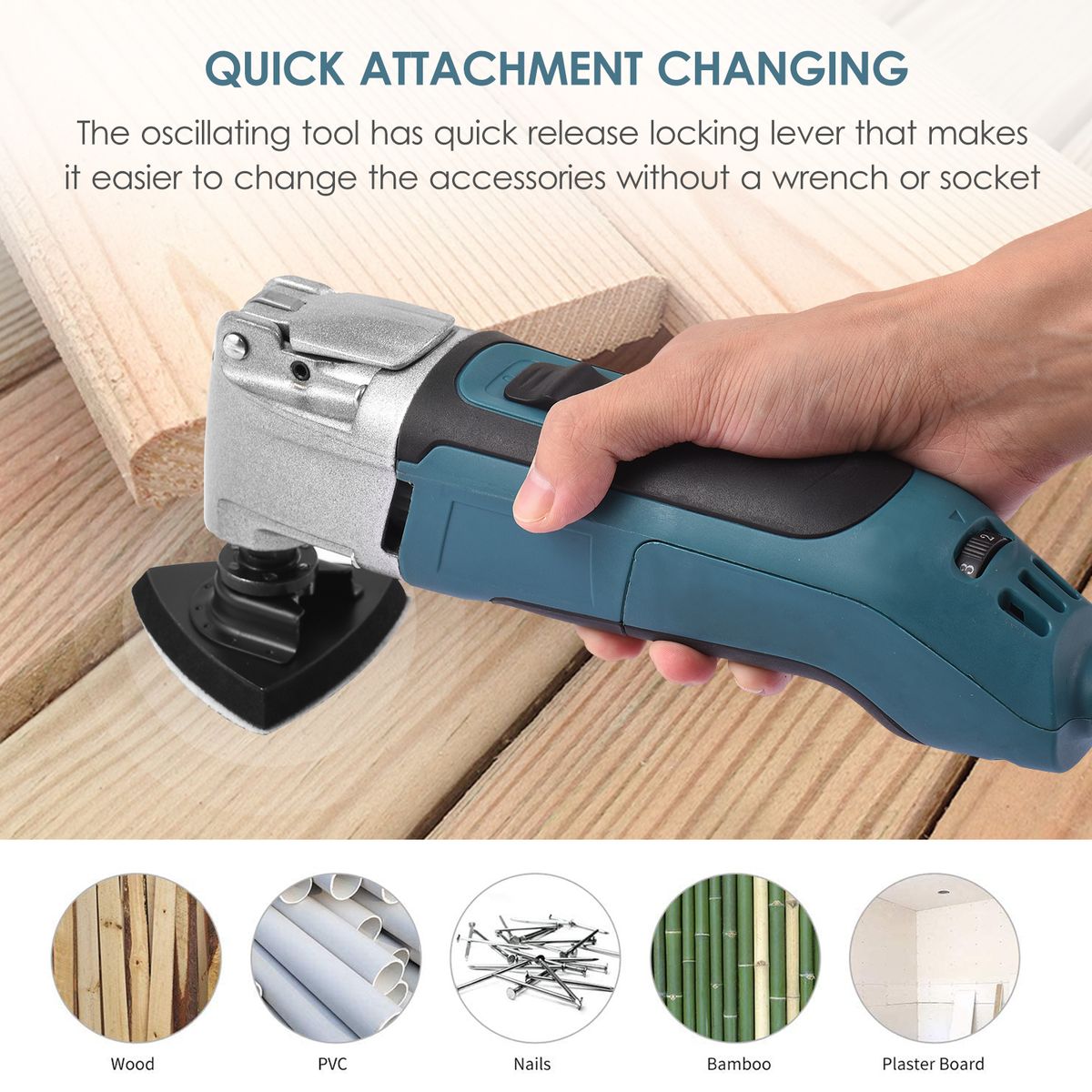 Quick Attachment Changing: the oscillating tool has quick release locking lever that makes it easier to change the accessories without a wrench or socket.