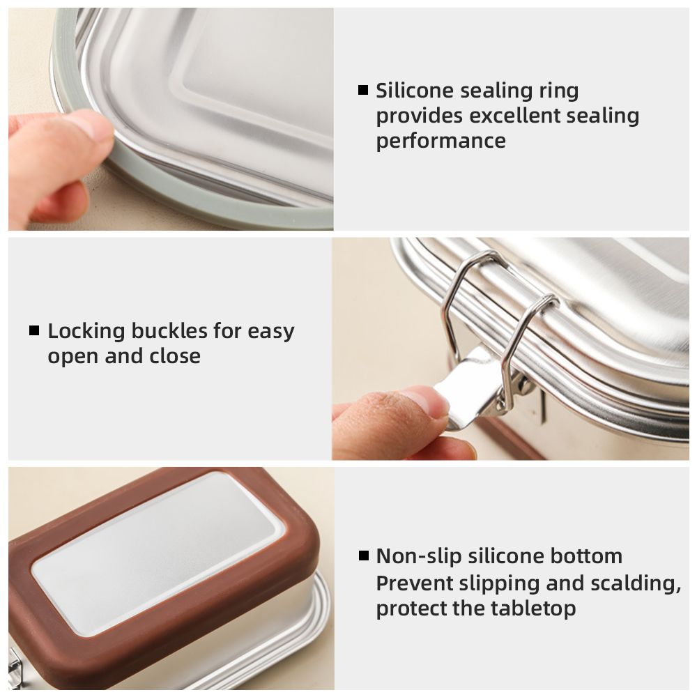 LEAK-PROOF AND ANTI-SLIP DESIGN: The inner edge of the lid is sealed with detachable silicone ring, together with the double locking buckles on both sides bring excellent sealing performance and prevent leakage. Silicone at the bottom perfectly prevents slipping and scalding and detachable design makes it easy to clean.