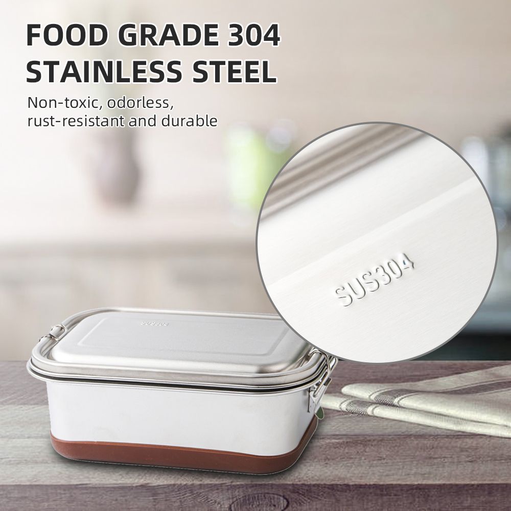 lunch box is made of food grade 304 stainless steel, which is non-toxic, odorless, rust-resistant and durable. You can put it safely in dishwasher and refrigerator. As the only material in contact with food, 304 stainless steel is a safe and sustainable plastic alternative that benefits your kids and the planet.