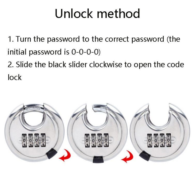 7. Unlock method: turn the password wheel to the correct password (the initial password is 0-0-0-0), slide the black slider clockwise to open the password lock