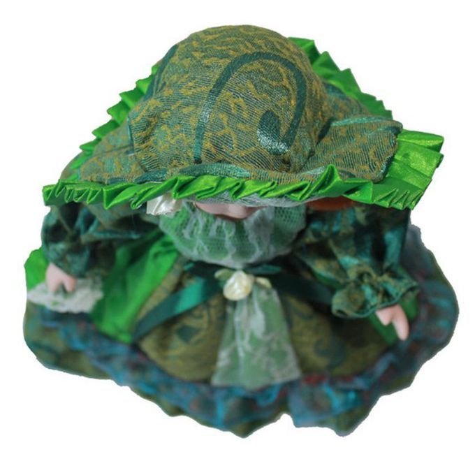 Charming victorian female dolls wearing long floral princess dress with handbag, big hat, and stand kids gift