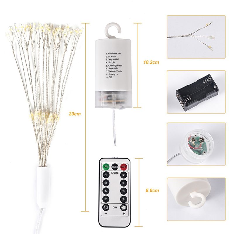 30cm Explosion Ball Fireworks Dimmable Copper Wire LED String Light, 150 LEDs Batteries Box LED Decorative Light with Remote Control(Colorful Light)