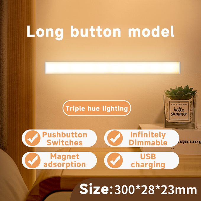 [Super bright eye protection technology] : This wireless cabinet light is composed of 20 led, with a brightness of 350LM. Touch switch adjustable 3 color modes: White Light 5500k/ Natural Light 4500k/Warm Light 3500k. Each color mode can be stepless dimming. This wardrobe light uses the latest LED technology, and the output light is uniform, soft and not harsh. led uses low voltage DC power supply, no flicker, lighting effect is more similar to natural light visually.