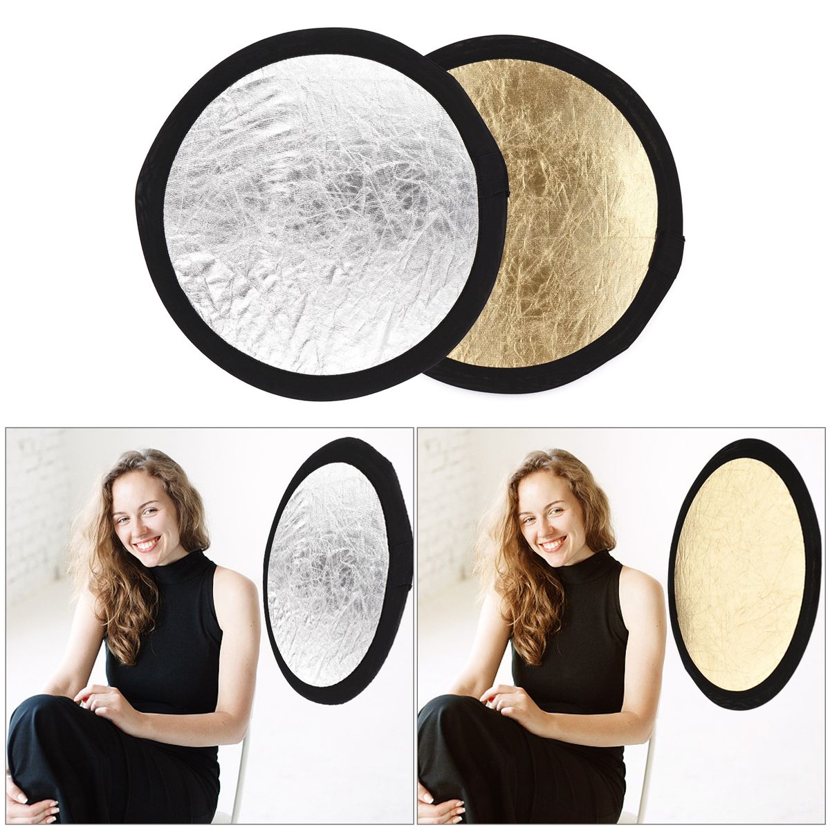 2-in-1 Photography Reflector: silver and gold 2-in-1 design meets your different needs of photography.