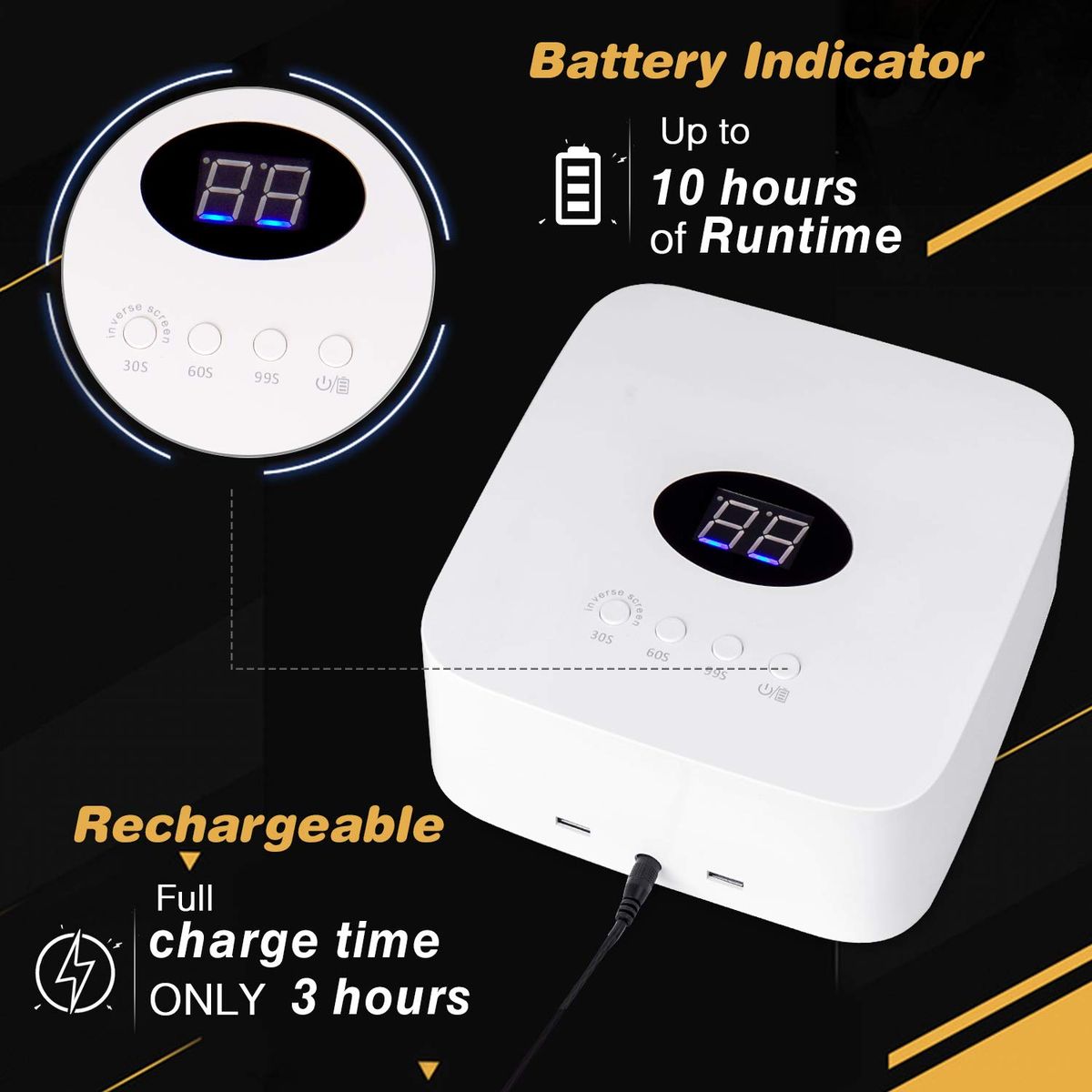 Feature 2:Rechargeable Wireless Nail Dryer