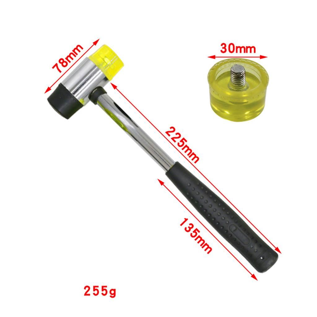 Hammer Body Length: 225mm / 8.86inchHammer Head Length: 78mm / 3.07inchDiameter: 30mm / 1.18inchWeight: Approx. 255g