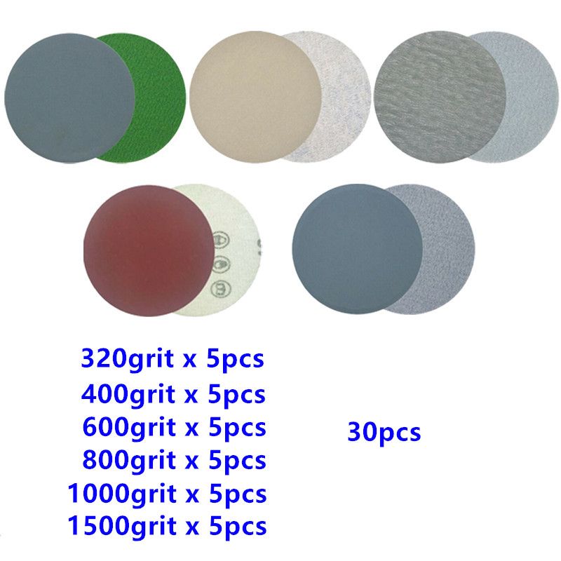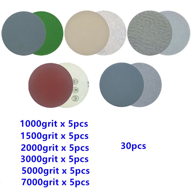 1*30pcs 3 Inch 75mm Round Wet Dry Sandpaper Disk San