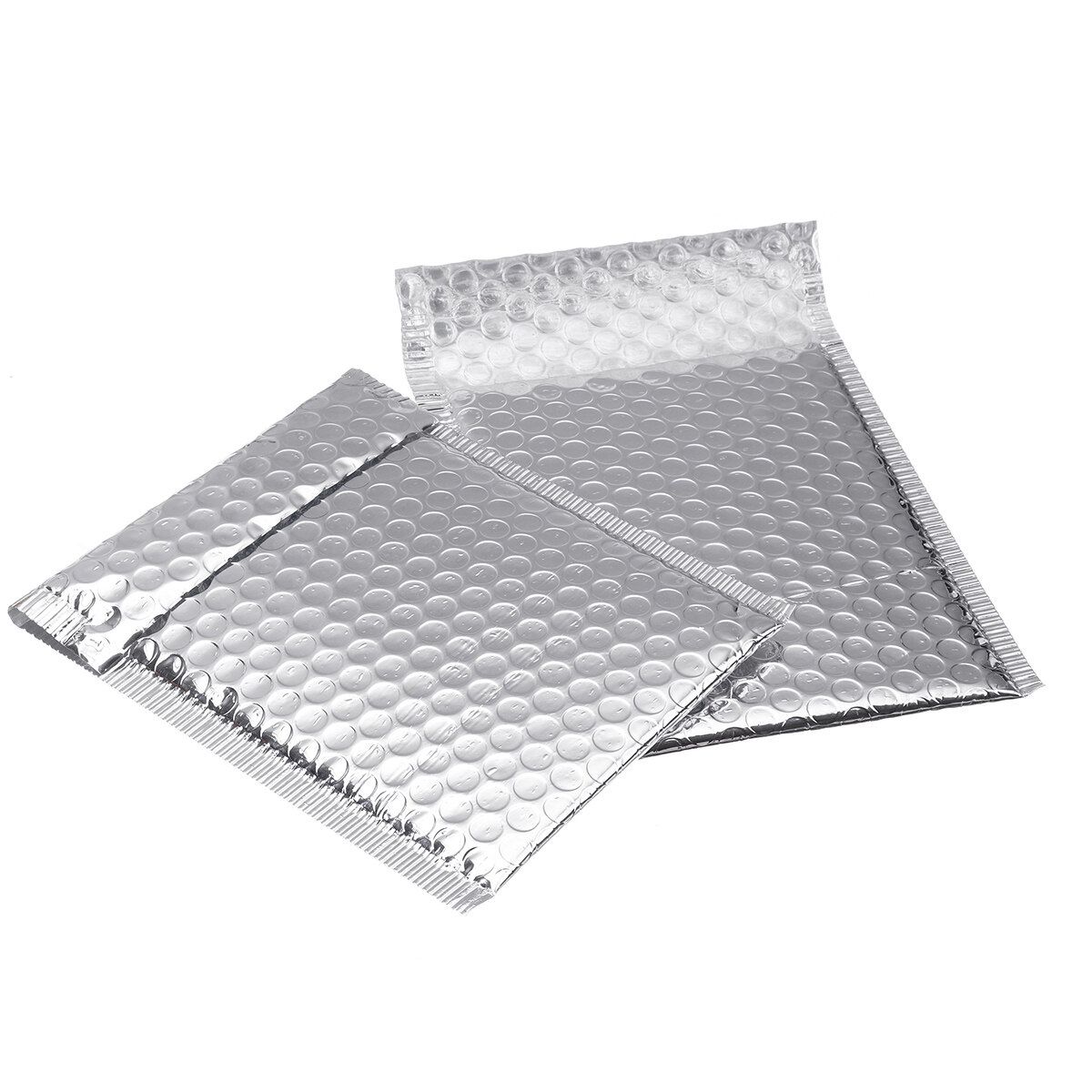 Specifications:--Shockproof, outer aluminum coating, inner compound bubble film completely sealed, shockproof and waterproof--Tear Resistance Envelopes: This padded envelopes are with durable and sturdy surface, work great instead of paper versions that tear with sharp,heavy, or weird shaped products. Also made with multilayered polyethylene sheets, provide an excellent protection for shipment.--Multipurpose Bubble Mailers: You can use these to mail cosmetics, paintings, fashion accessories, jewelry, medicines, seeds and bulbs, and a lot more. They are padded enough to protect fragile things during shipping. The laminated top allows you to attach self-adhesive stamps and address labels easily.--Self-Adhering Envelopes: The White poly bubble mailers come with a self-adhesive tamperproof seal. Once the envelope has been sealed, it cannot be opened without visible signs of tampering. The smooth surface of the mailers makes it easy to stick stamps and address labels.