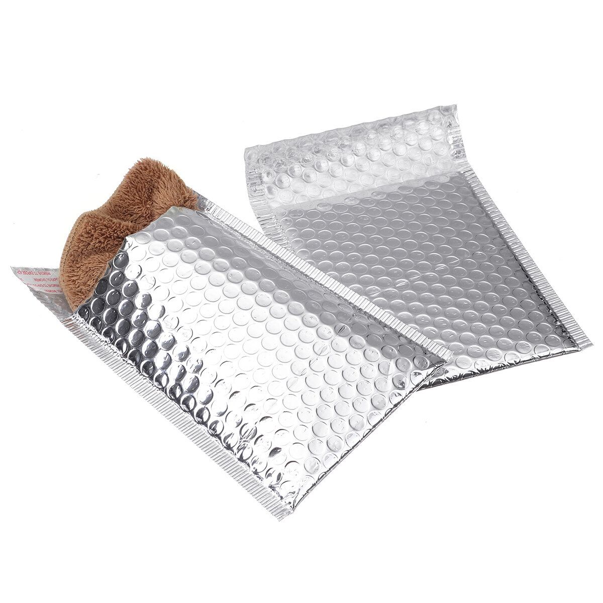 Specifications:--Shockproof, outer aluminum coating, inner compound bubble film completely sealed, shockproof and waterproof--Tear Resistance Envelopes: This padded envelopes are with durable and sturdy surface, work great instead of paper versions that tear with sharp,heavy, or weird shaped products. Also made with multilayered polyethylene sheets, provide an excellent protection for shipment.--Multipurpose Bubble Mailers: You can use these to mail cosmetics, paintings, fashion accessories, jewelry, medicines, seeds and bulbs, and a lot more. They are padded enough to protect fragile things during shipping. The laminated top allows you to attach self-adhesive stamps and address labels easily.--Self-Adhering Envelopes: The White poly bubble mailers come with a self-adhesive tamperproof seal. Once the envelope has been sealed, it cannot be opened without visible signs of tampering. The smooth surface of the mailers makes it easy to stick stamps and address labels.