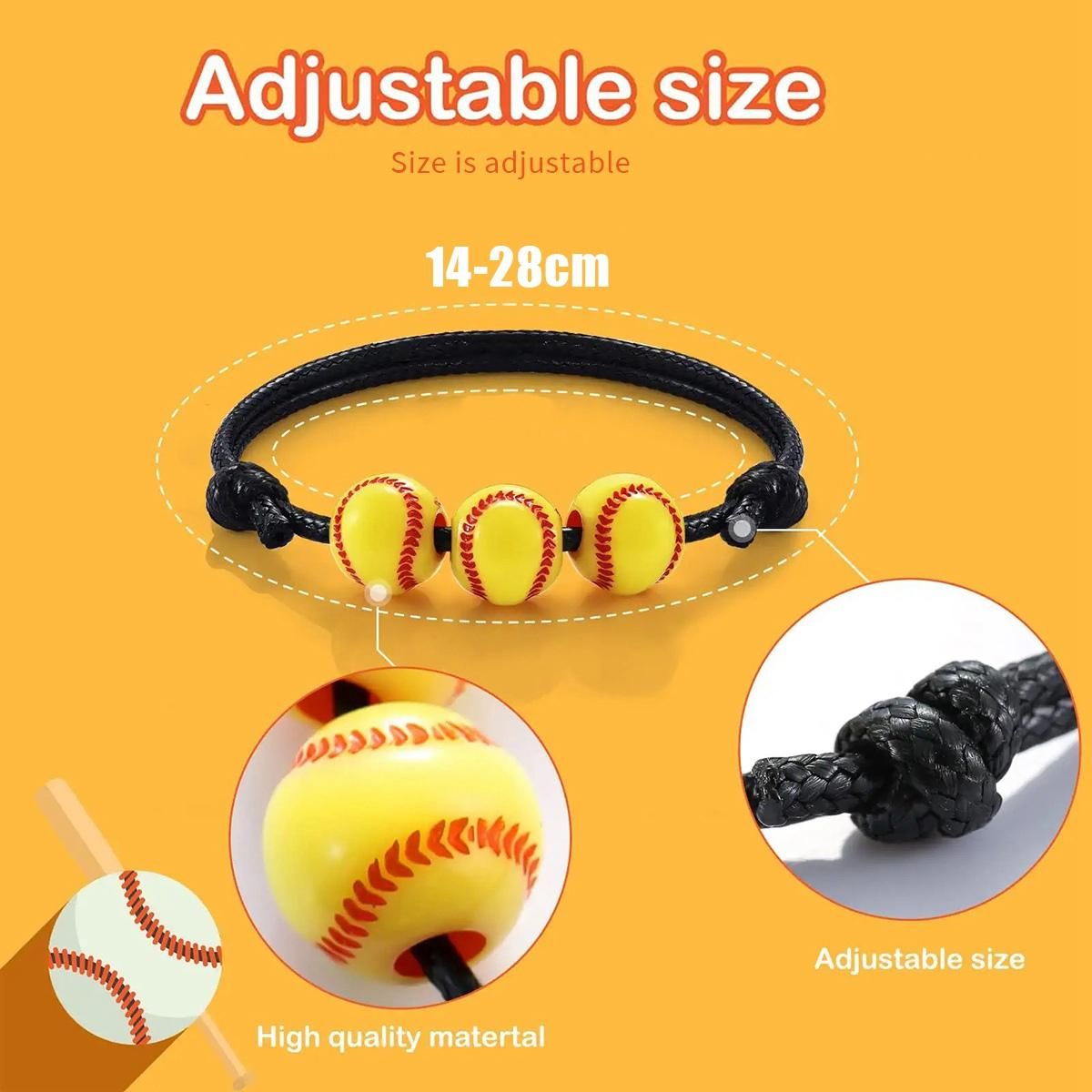 3 Beads Design: our adjustable braided bracelets are designed in 3 Baseball beads, featuring classic yellow color, can bring you more charms when you wear them, clearly show your personalized tastes
