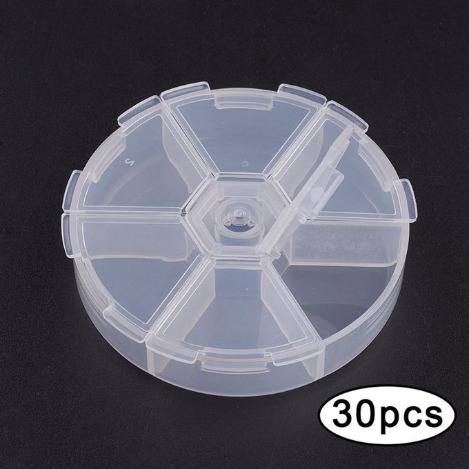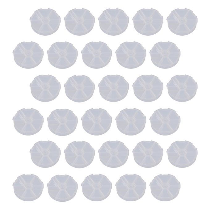 Pack of 30 6 Grids Round Clear Plastic Storage Box, Jewelry Box for Bead Art DIY Craft Jewelry .