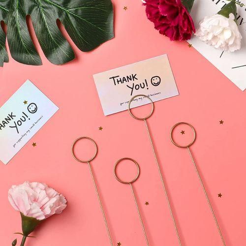 [Multi-purpose]:This gold card holder is suitable for dinner food logos, wedding name brands, wedding table cards, note cards, pictures, photos, memos, paper menus, business cards, message cards, etc.
