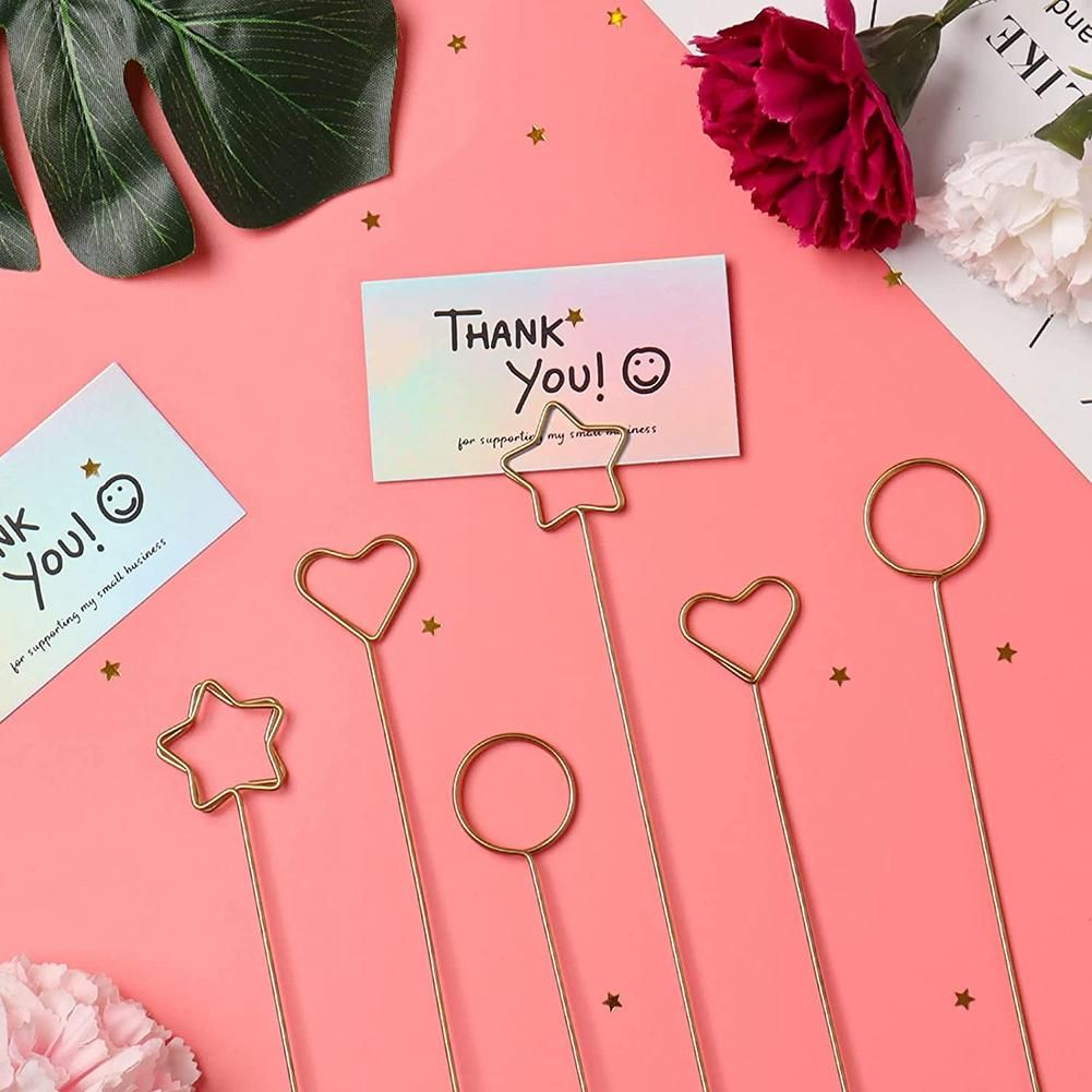 [Multi-purpose]:This gold card holder is suitable for dinner food logos, wedding name The product is new s, wedding table cards, note cards, pictures, photos, memos, paper menus, business cards, message cards, etc.