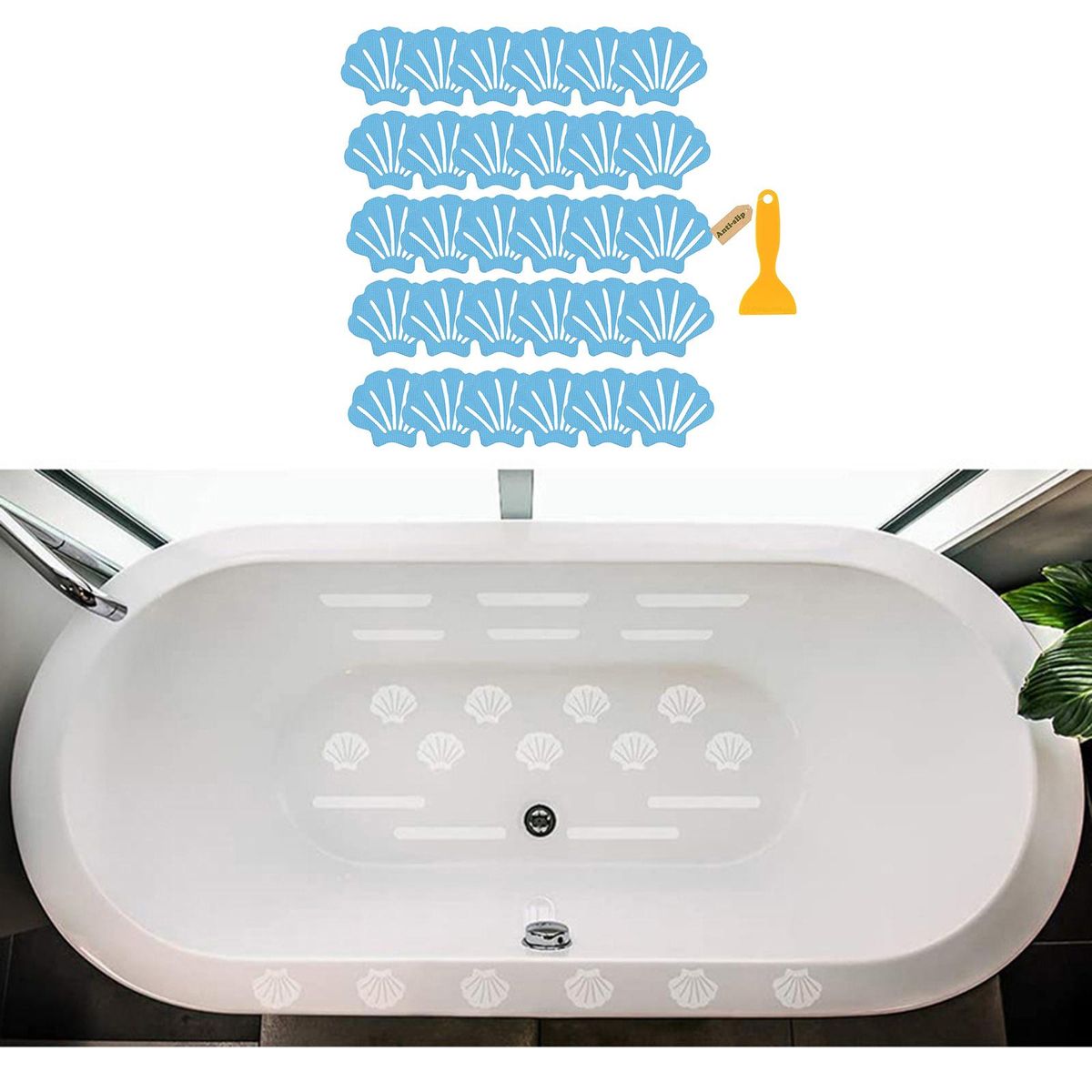 Bathtub Stickers;Non Slip Bathtub Stickers Adhesive Decals Shell;Non-Slip Bathtub Stickers 30 PCS Bathroom Tubs;Safety Shower Treads Adhesive Appliques Scraper;Bathroom Non Slip Anti Skid Tub Treads Stickers;Shower Mat Floor Grip Safety Waterproof Strong