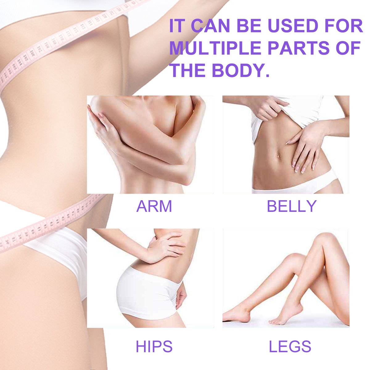It can be used for multiple parts of the body, arm, belly, hips, legs.