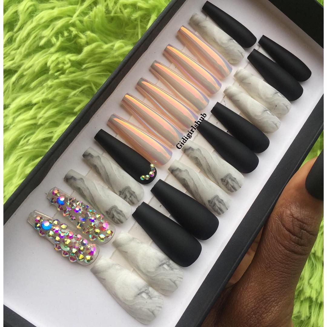 How long your nails last?Depends on what kind of adhesive method you use but usually sticker glue last 1-3days and liquid glue last 1-2 weeks. (Wear time is various depends on amount of your contacts to water)