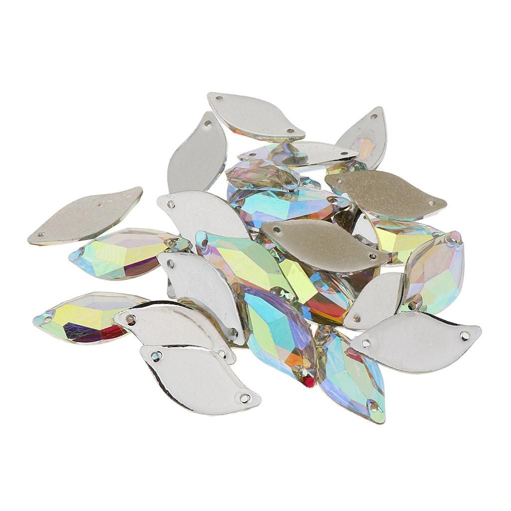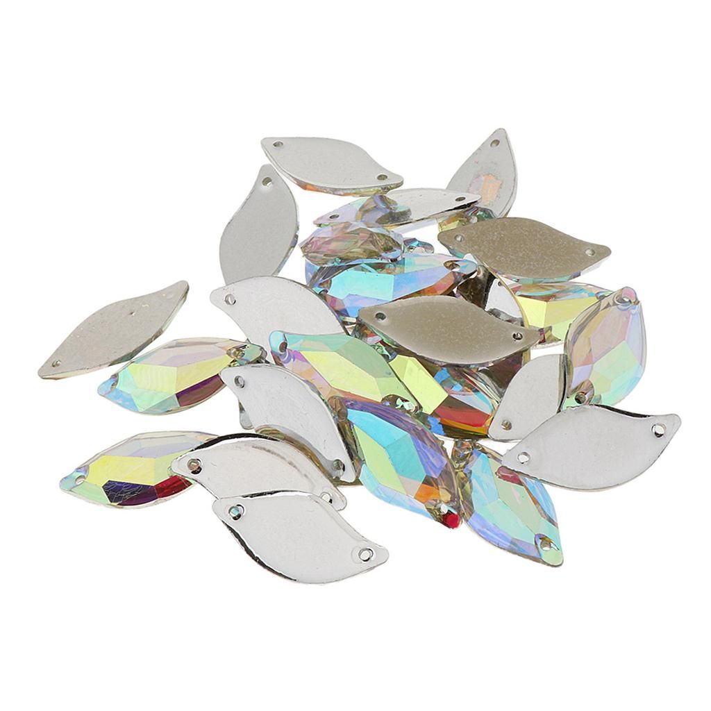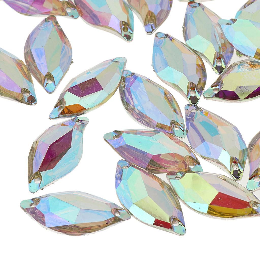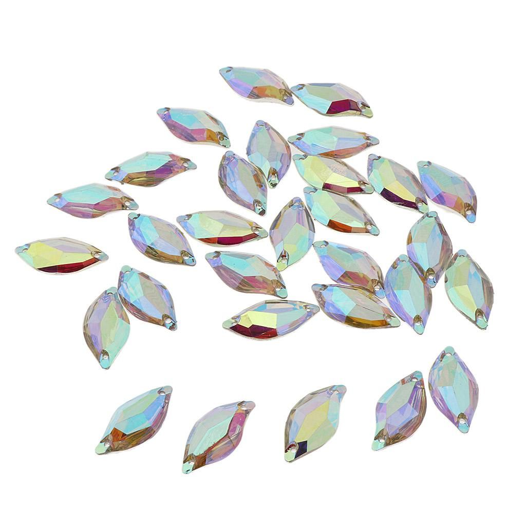 30Pieces Clear AB color rhinestones Nice quality, material: plasticFlat back, size:approx.14x30mm / 0.55x1.18inchEach has two holes so can be sewn onto clothes, or stuck with .You can sew it onto fabric,dress,garments,bags,shoes,handicrafts,arts,headpiece,etc.