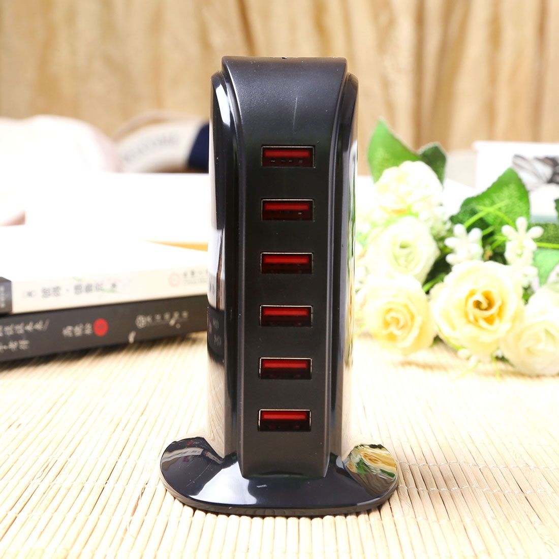 30W 6 Ports USB Fast Charging Dock Smart Charger AC100-240V (Black)