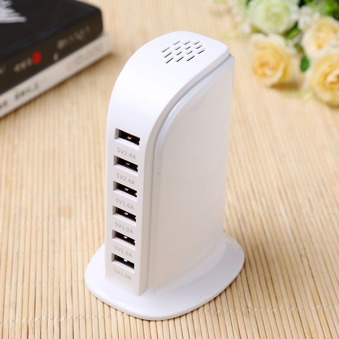 30W 6 Ports USB Fast Charging Dock Smart Charger AC100-240V (White)