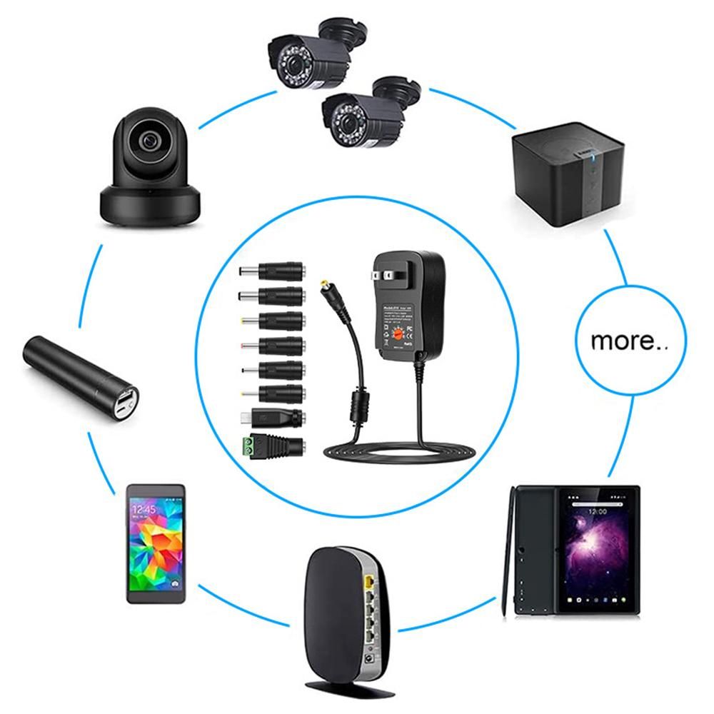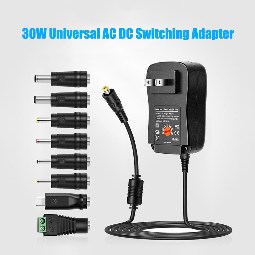 Buy 30W Universal AC to DC Power Supply Adapter with 5V 2.1A USB Port, AC Plug-in Power Charger 3V to 12V Adjustable Output Voltage with 8 DC Adapter Tips for Household Electronics in Nigeria