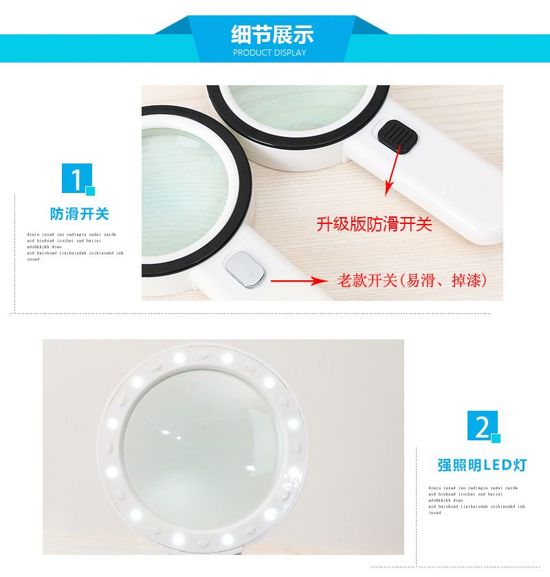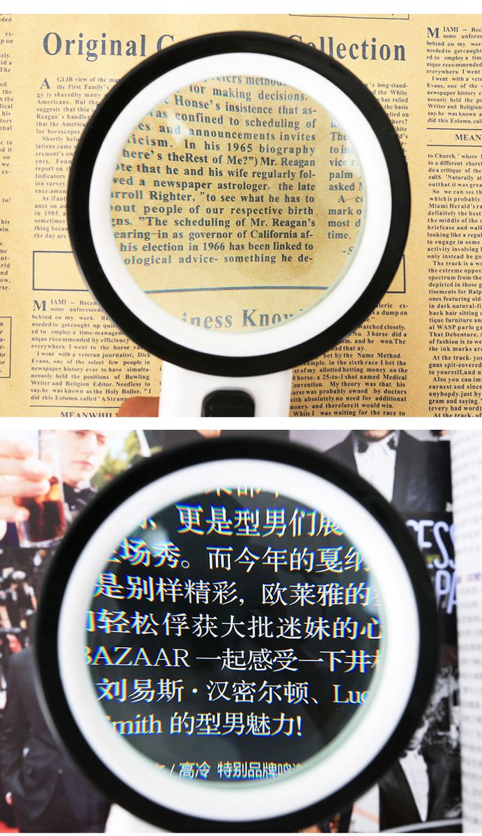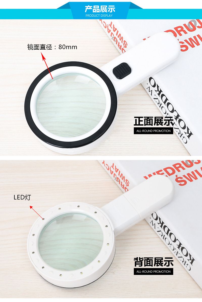 30x double-layer optical glass lens with LED light magnifying glass△Introduction▽Item No. 2288-85Type Handheld MagnifierModel 2288-8530x magnificationEffective diameter 80mm (mm)Material ABS, metal, two glass lenses♠Features♥Item No. 2288-85Type Handheld MagnifierModel 2288-8530x magnificationEffective diameter 80mm (mm)Material ABS, metal, two glass lenses ⇉Package⇇-1 PC