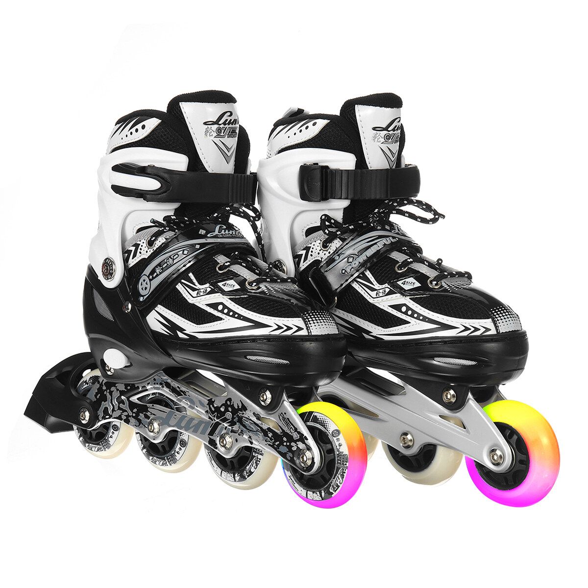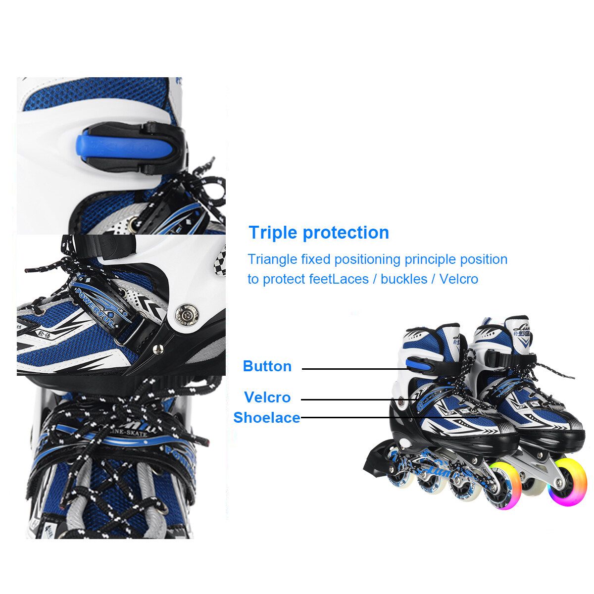 (31-42 Size) S/M/L Flashing Unisex Adult/Kid Breathable Inline Speed Skates Roller 4 Wheels Skating Shoes Adjustable Protective Bracers LED Flash Wheels Skates Gifts for Girl Boy Safety Roller Skates Toys