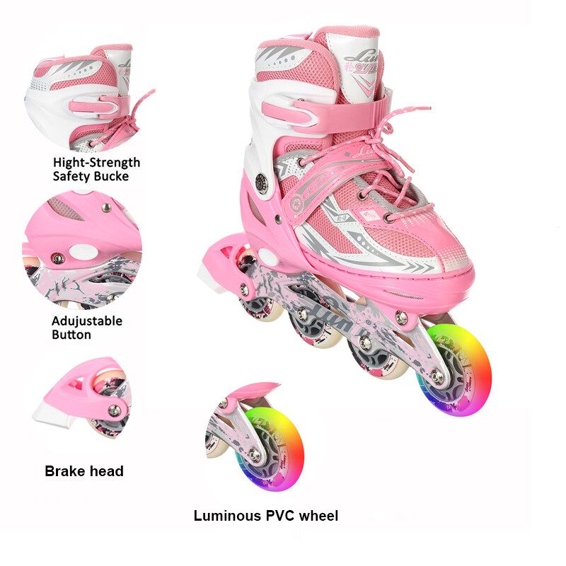 (31-42 Size) S/M/L Flashing Unisex Adult/Kid Breathable Inline Speed Skates Roller 4 Wheels Skating Shoes Adjustable Protective Bracers LED Flash Wheels Skates Gifts for Girl Boy Safety Roller Skates Toys