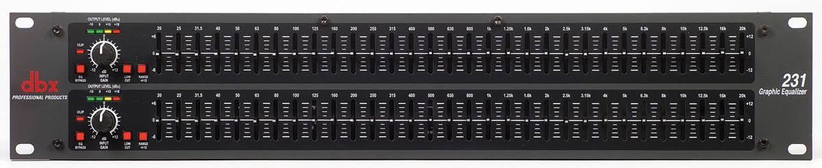 The 231s from dbx is a dual channel, 31 band, 1/3 octave graphic equalizer housed in a dual space, rack mount chassis. The processor is equally suitable for live applications, audio installations, and for use in a studio. The unit features 20mm non-conductive sliders that can be set to either +/-6dB or +/-12dB of boost or cut. A global control provides +/-12 dB of input gain. A 12dB per octave, 3dB down at 50Hz low-cut filter can also be switched in if required. From its extended frequency response and excellent dynamic range, to the quality components and meticulous attention to detail, the 231s offers exceptional sound and rugged reliability. The unit features 20mm non-conductive sliders that can be set to either +/-6dB or +/-12dB of boost or cut. A global control provides +/-12 dB of input gain. A 12dB per octave, 3dB down at 50Hz low-cut filter can also be switched in if required. From its extended frequency response and excellent dynamic range, to the quality components and meticulous attention to detail, the 231s offers exceptional sound and rugged reliability. FEATURES: Dual channel, 31-band, 1/3-octave constant Q graphic EQ Switchable boost/cut ranges of +/-6 or +/-12dB 20mm non-conductive sliders 12dB per octave, 3dB down at 50Hz low-cut filter +/-12 dB input gain range Front panel bypass switch 4-segment LED laliers for monitoring output levels XLR and 1/4" TRS inputs and outputs