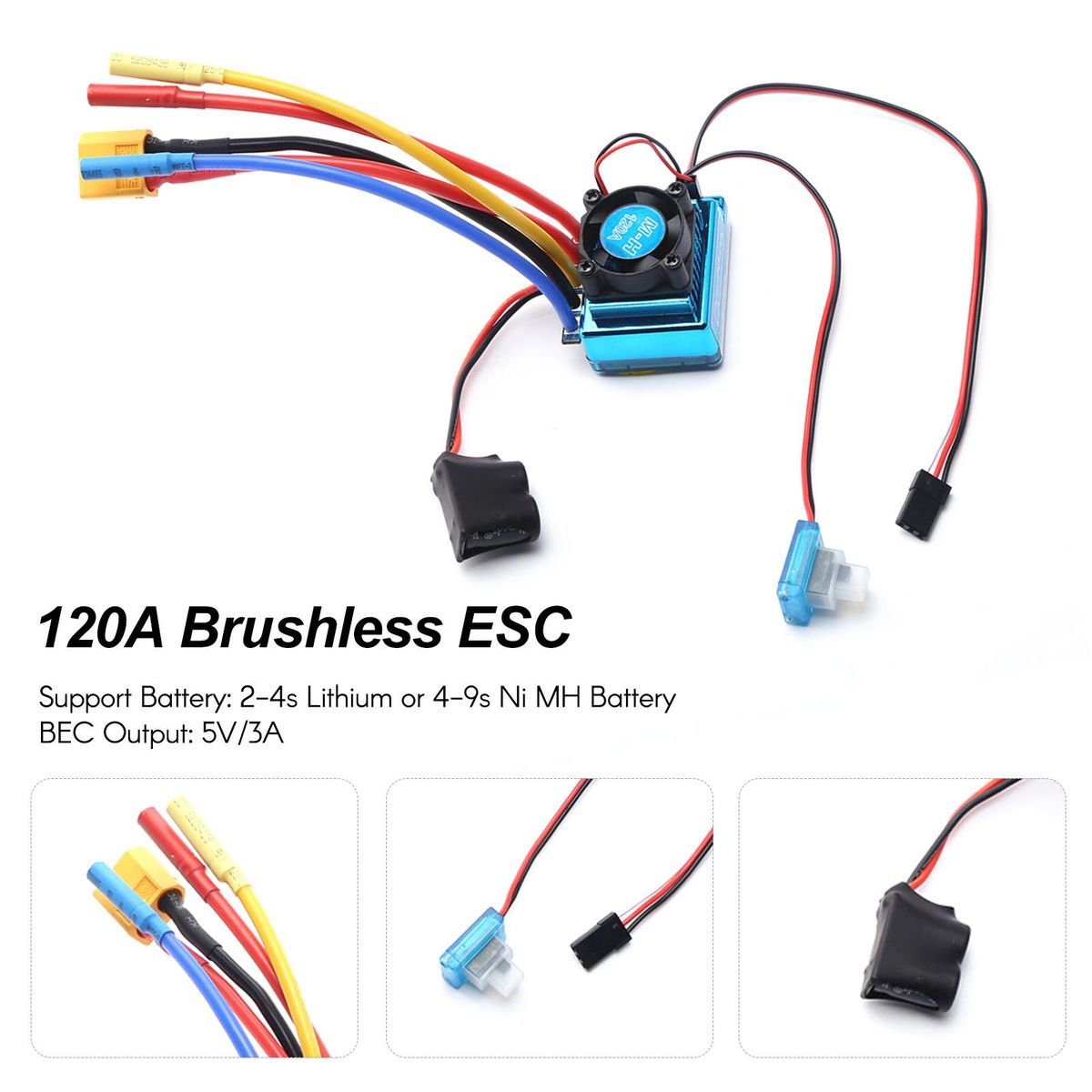 Buy 3100KV Brushless Motor 3650 Waterproof Motor with 120A Brushless ESC XT60 Plug Programming Card Heat Sink for 1/8 1/10 1/12 RC Car RC Boat Part in Nigeria
