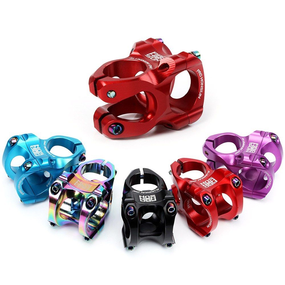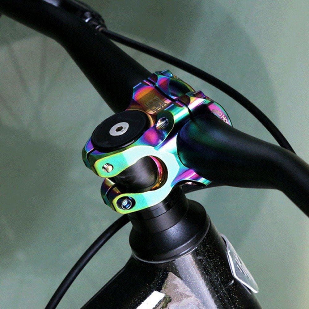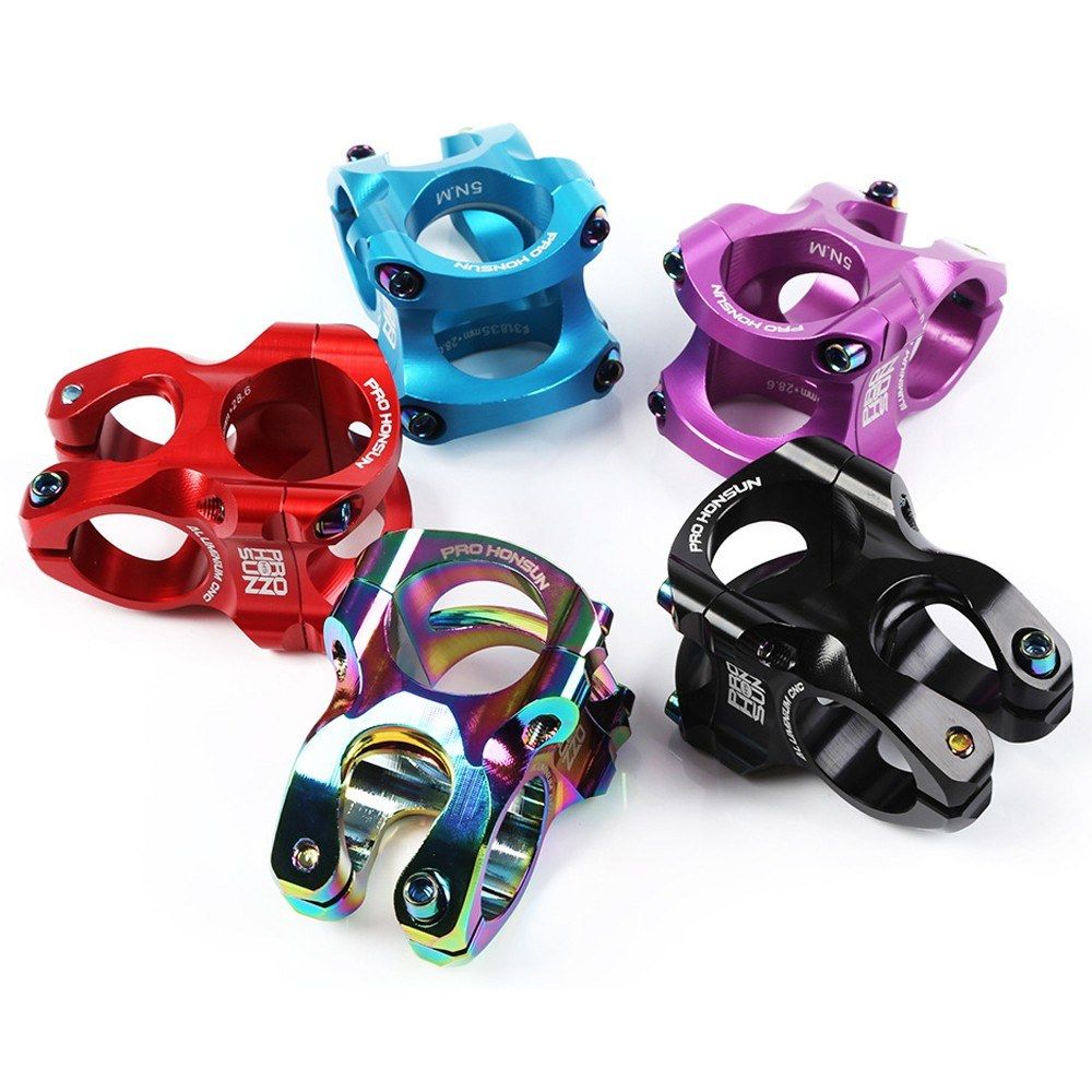 The bike stem is made of aluminum alloy, lightweight and super strong. It is suitable for 31.8mm handlebar diameter and 28.6mm steer tube diamter. It is very easy to install.