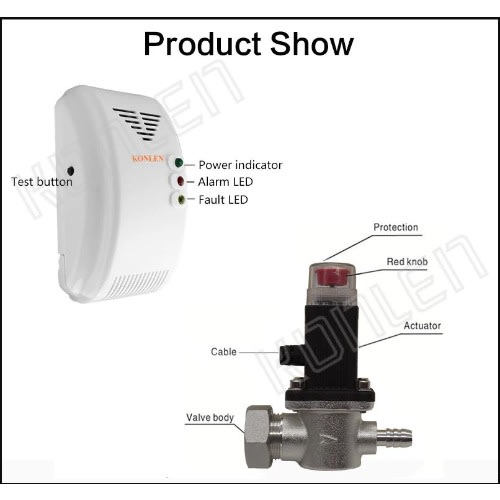 2.Work with solenoid valve : when detect the gas leakage ,the solenoid valve will shut off automatically .