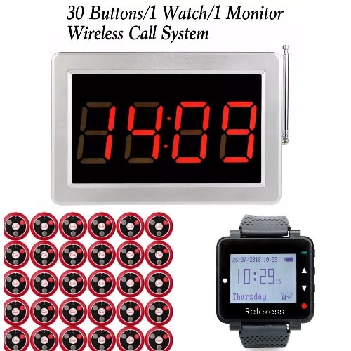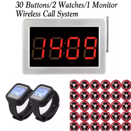 Hotel Bar/Restaurant Wireless Call System 1monitor/2Watches/30Buttons.