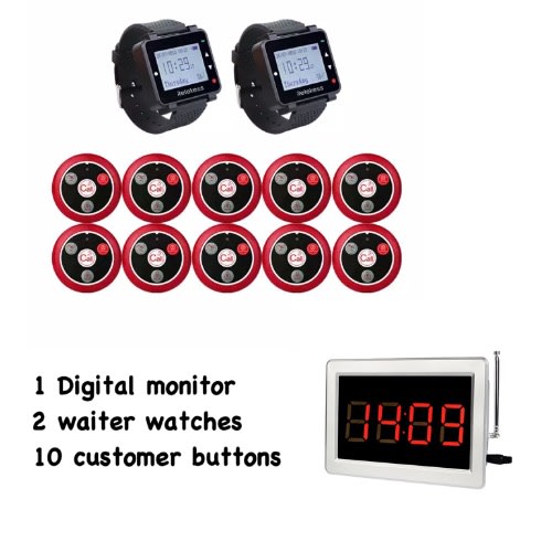 Waiter Wristwatch/10 Customer Wireless Service Call System.1 Waiter Watch/10 Call Buttons: