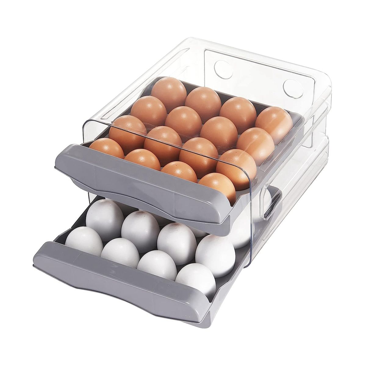 32 grid capacity, double layer design, can store 16 eggs per layer, free storage and more space saving Egg tray fixing, groove design, each egg is placed separately, prevent shaking, effectively prevent the egg from colliding and breaking.
