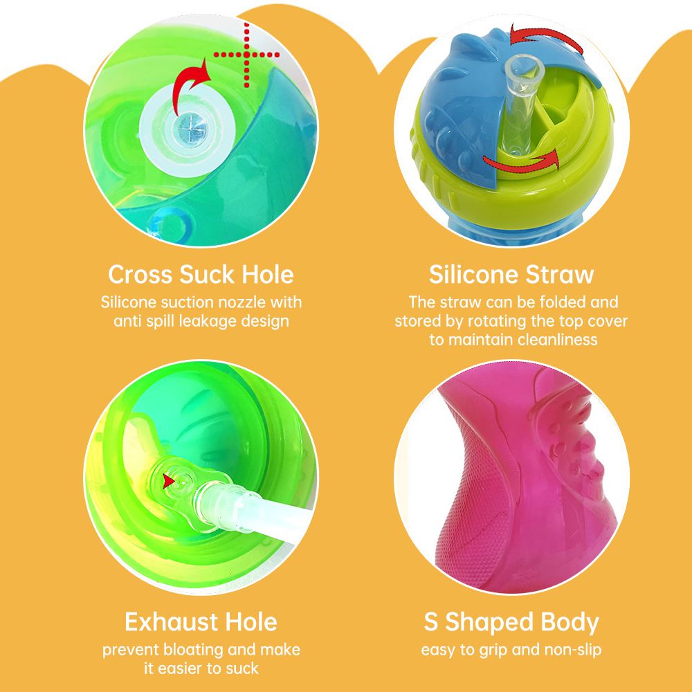 Silicone Straw: The detachable and washable design makes cleaning a breeze, and the sippy cup with silicone straw is designed for infants and toddlers who are transitioning from bottles or breastfeeding to drinking from a cup.