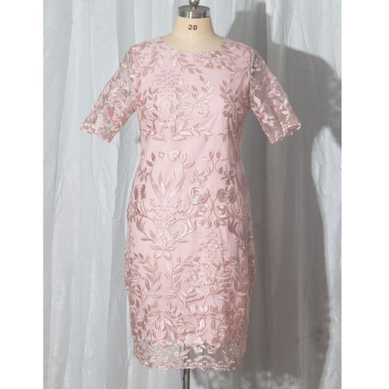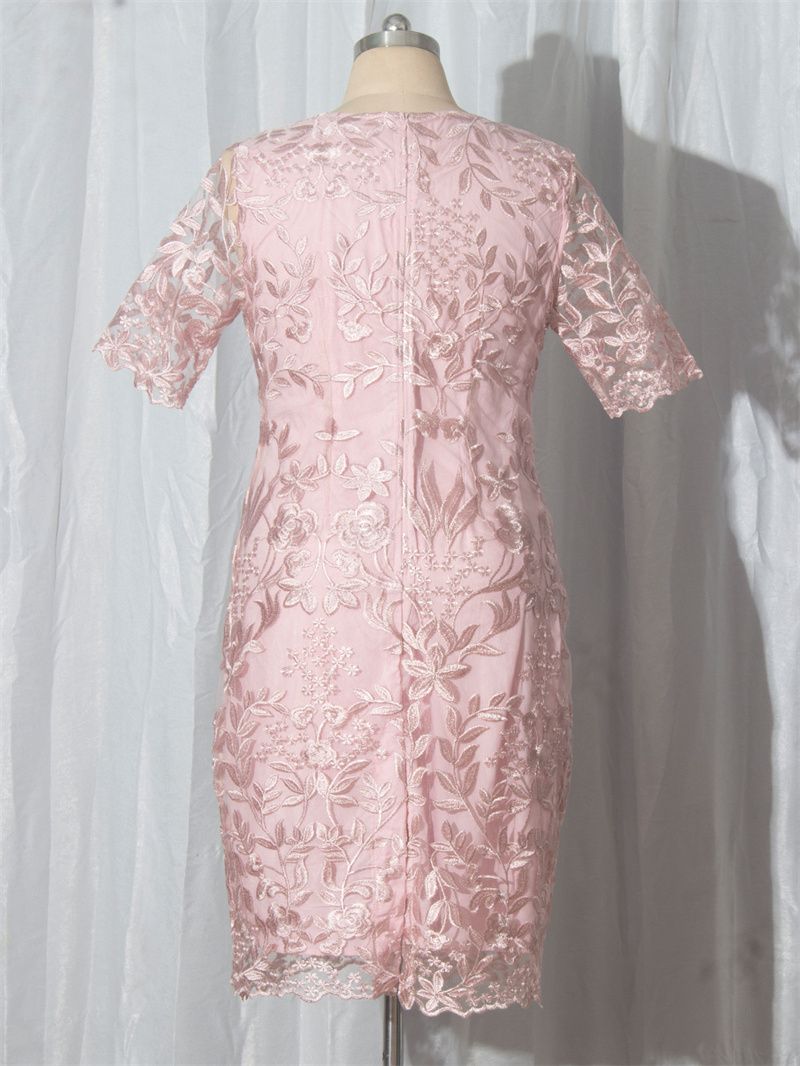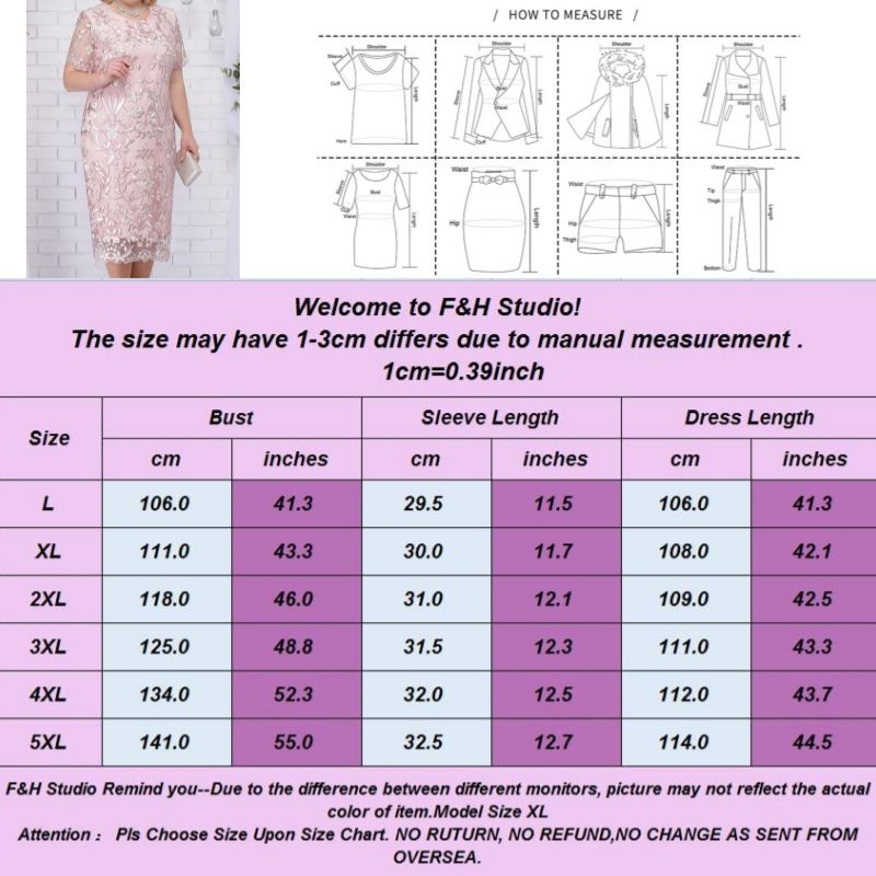 Style:L-5XL Women Large Size Lace Gown Dress Round Neck Plus Size Party Dress