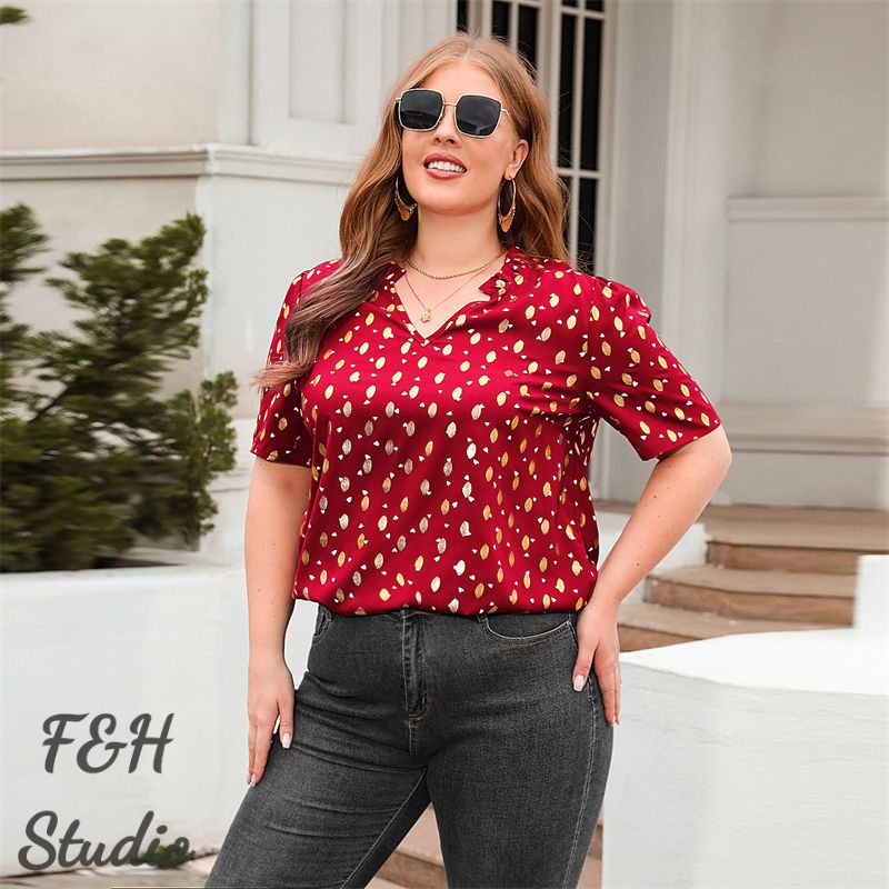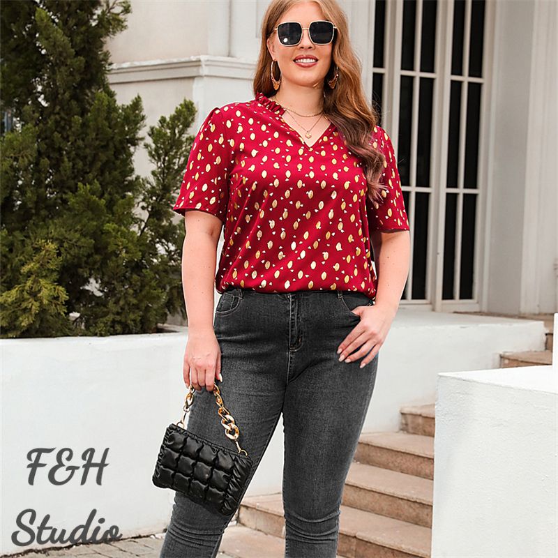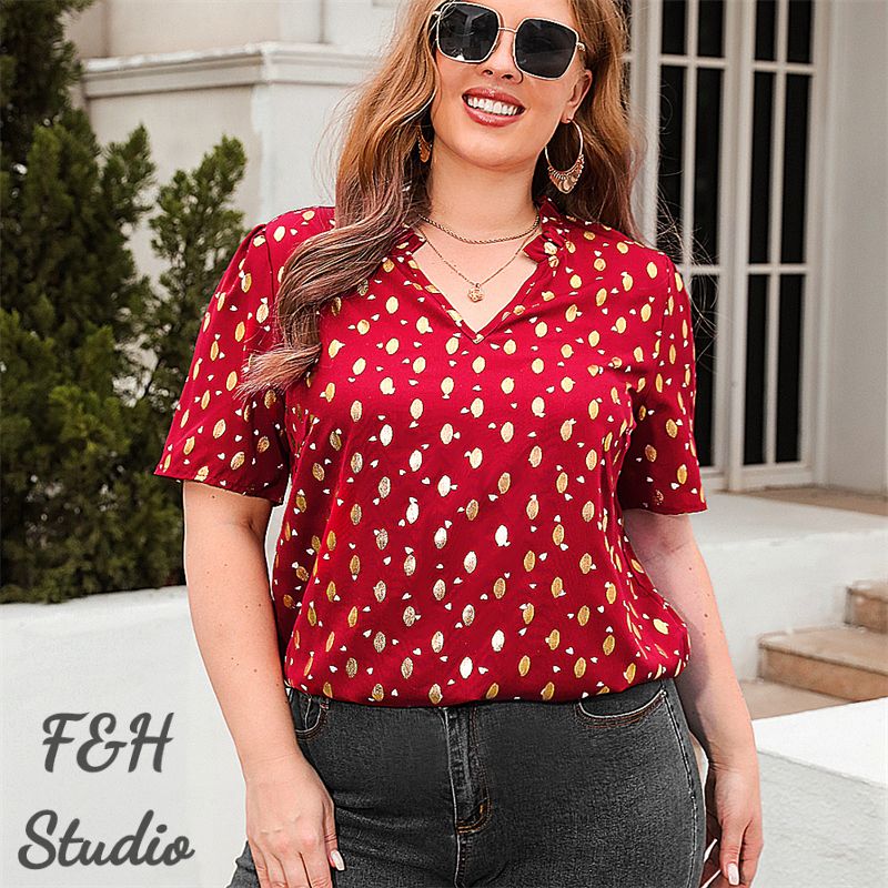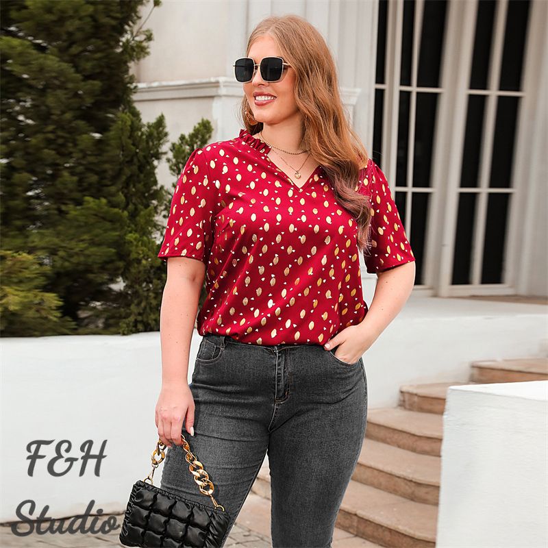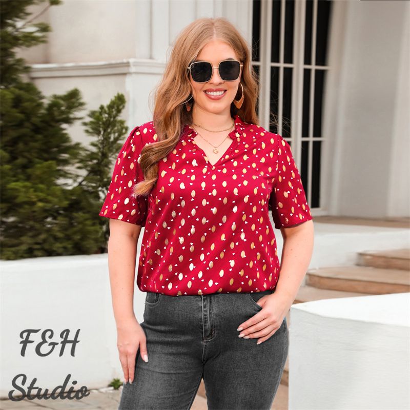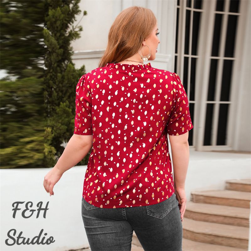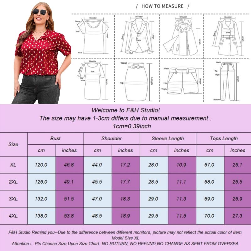 Color: Red Size: XL, 2XL, 3XL,4XL Model Size FYR: Model wear size XL ❤This is a polo neck short sleeve big size tops plus size blouse !!❤Style:Polo Neck Short Sleeve Polka Dot Plus Size Blouse Big Size Tops. Please note that slight color difference should be acceptable due to the light and screen.What You Get:1 x Blouse. FQA:1. Q: Why the item haven't shipped out? A: After you place the order, We will ship the item to the rehmie warehouse within 48 hours as soon as possible, and then rehmie warehouse will send the item to you. If you find the logistics status is"to be shipped", it may be because the rehmie warehouse has not yet been shipped. Please don't worry. 2. Q: How can I choose the size? A:Please refer to the size chart and select the appropriate size according to your actual size.If you are not sure what size to choose, please call me. 3. Pls take note that all the clothes can not be returned or exchanged.4. All dimensions are measured by hand, there will be 2-3cm reasonable deviations. (1cm=0.39 inches). Pictures are only samples for reference. Due to the differences in monitor settings, the colors shown in the photograph may not correspond 100% to those in the items themselves. 5.For transportation needs, the cloth that you've received will have a fold phenomenon. Please don't worry, this fold situation will disappear after the first time you clear or ironing.