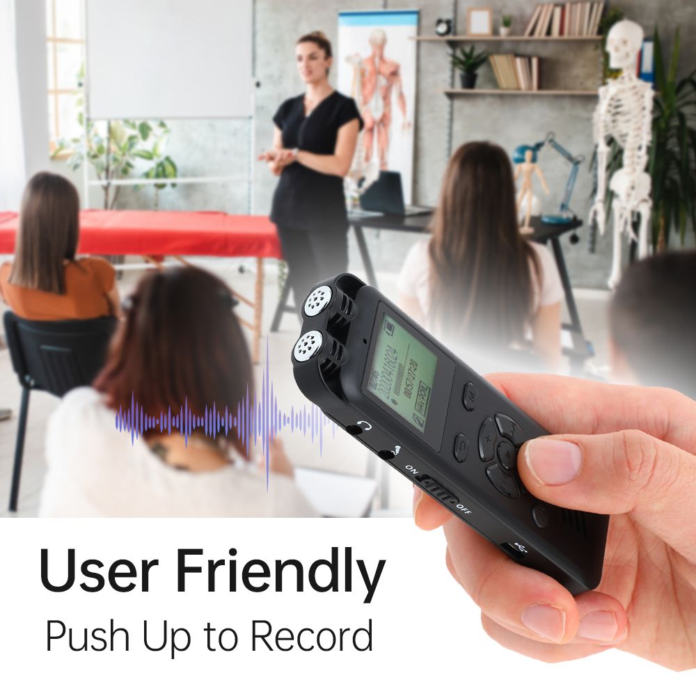 Features:Excellent Recording Quality - Built-in condenser microphone, support WAV and MP3 recording and maximum 1536kbps sound quality. Intelligent noise reduction function let you better record the sound at the time and keep the most primitive sound. With 3 memory storage capacity to choose - 8GB,16GB, 32GB storage capacity.
