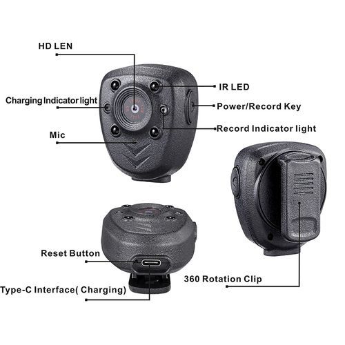 32GB Full HD 1080P 12M Body Video Recorder Pocket DVR Integrated Camera 360 Rotating Clip mini camera