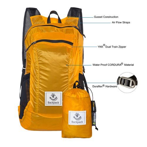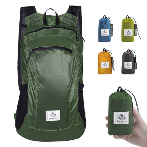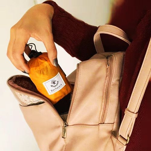 A backpack lightweight design and materials that fit into your pocket when folded.