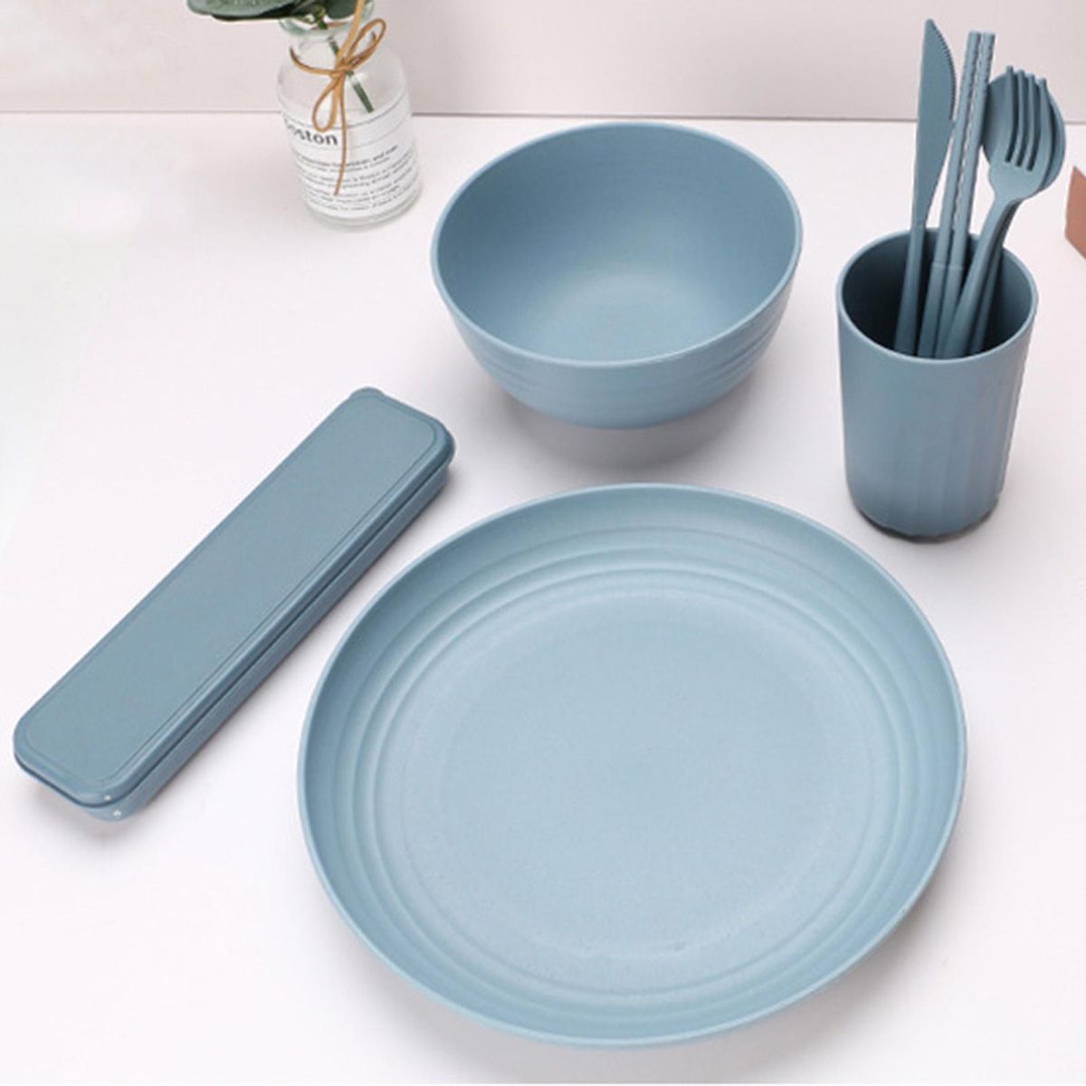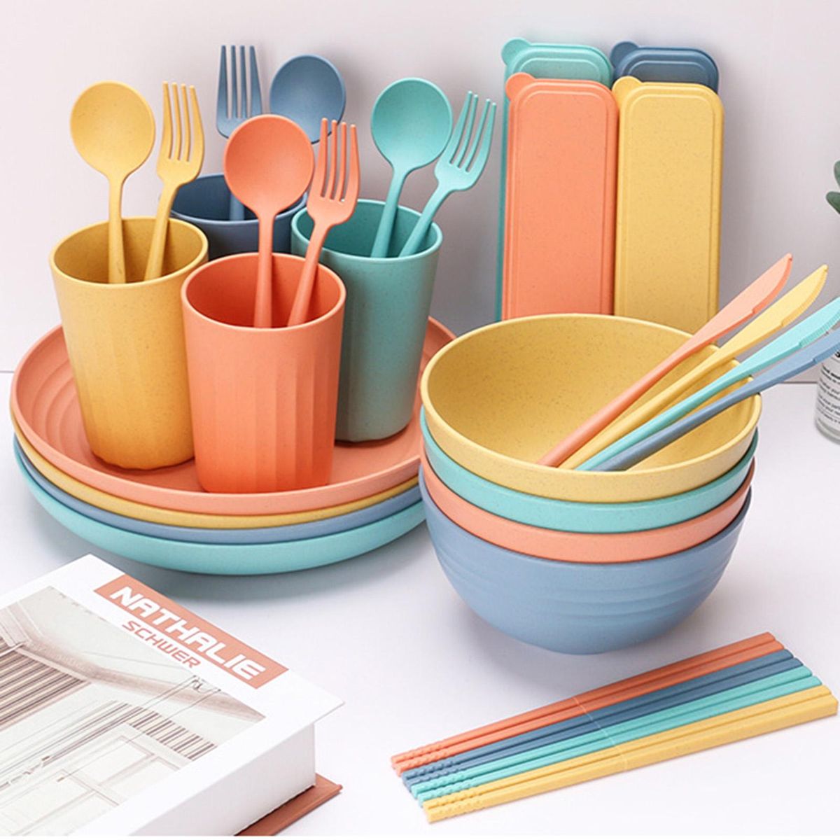Buy 32PCs Food-grade Wheat Straw Dinnerware Set Microwave Dishwasher Freezer Safe Plates Bowls Cups Spoons Forks Chopsticks Cutters Cutlery Boxes Practical Tableware Eco-friendly Reusable Kitchen Utensils for Kitchen Kindergarten School Office Picnic Parties in Nigeria